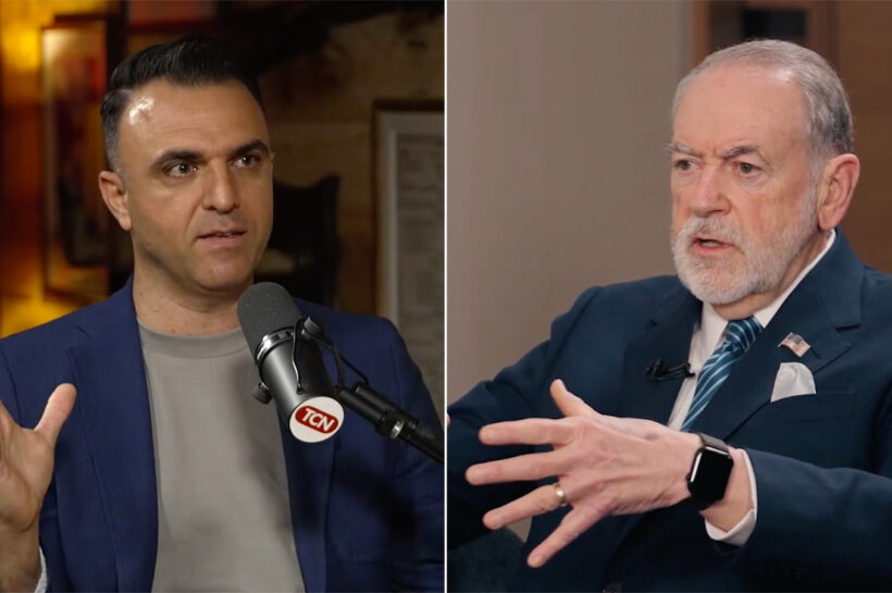 The Rev. Fares Abraham, left, and Ambassador Mike Huckabee recently appeared on separate episodes of "The Tucker Carlson Show." (Video screen grabs)